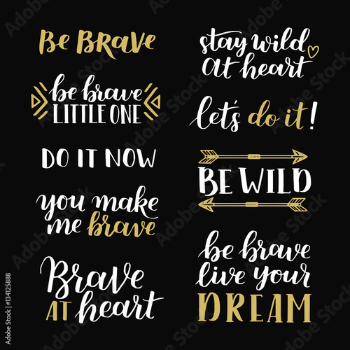 Set Of Hand Drawn Quotes About Courage And Braveness Be